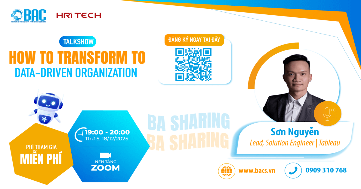 Talkshow Tháng 12/2025: “How to Transform to Data-Driven Organization” sẽ mang đến góc nhìn thực tế về hành trình chuyển đổi dữ liệu tại doanh nghiệp – cách một tổ chức có thể từng bước xây dựng chiến lược, vận hành, văn hóa và năng lực dữ liệu để thật sự ra quyết định dựa trên insight, không phải cảm tính.